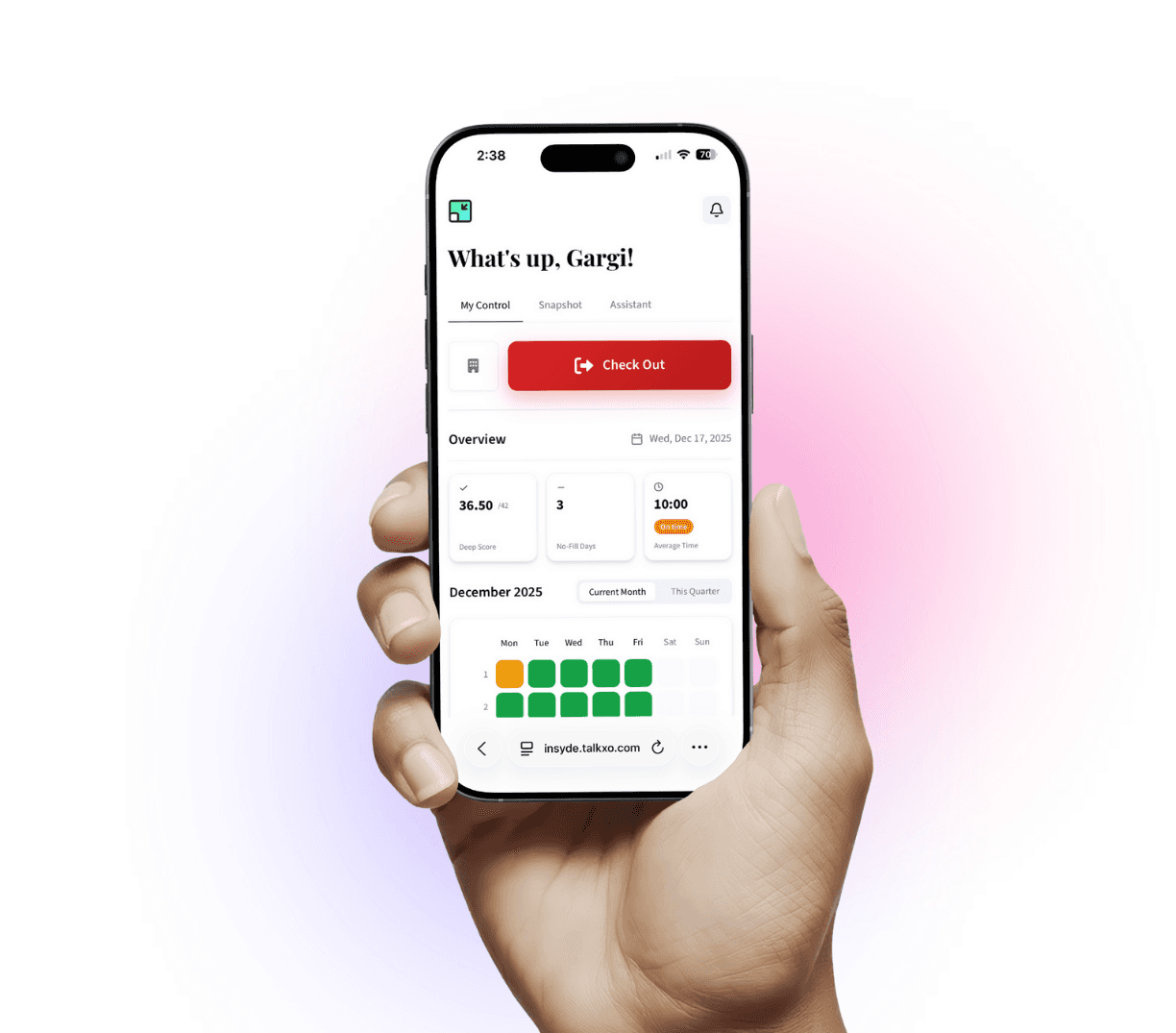 Work/life balance starts at a fulcrum called punctuality. For a team, it translates into their work hours. We built Insyde for teams to manage their attendance and leaves with ease. Then, we gamified it and added that AI sauce too.